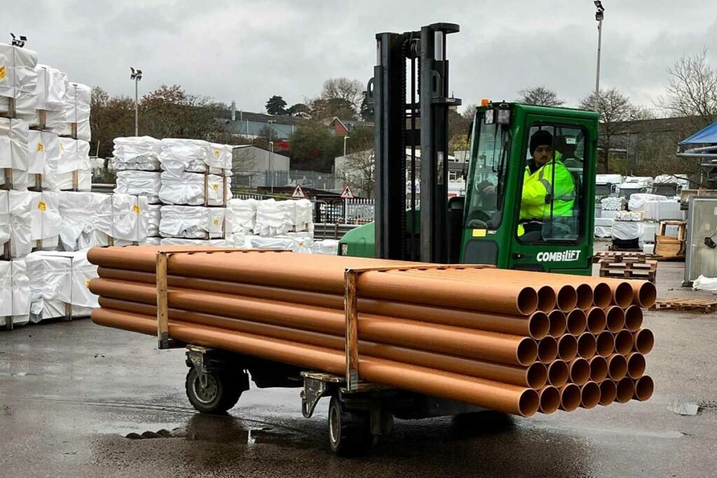 Sideloader trucks tend to be used in industries such as steel, timber, plastic and concrete. They are efficient in carrying longer and unusual loads safely through tight areas through warehouses and into the yard to load vehicles.